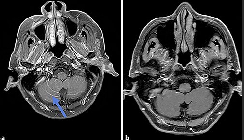 患者因经济压力无法承担原研药价格,转而选择印度泰瑞沙(80mg/日)。用药不到1个月,头痛显著缓解,视力恢复;治疗10个月后,脑部病灶稳定,原发灶无进展。